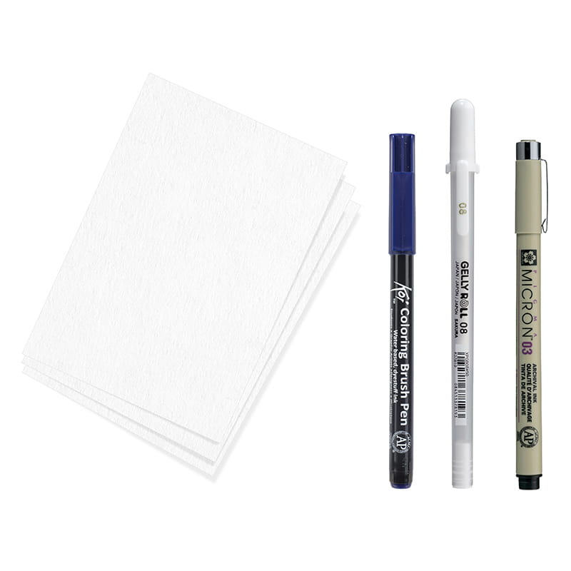 Zestawy Sakura Creative Kits to idealny sposób na odkrycie najbardziej ikonicznych narzędzi marki Sakura i jednoczesne rozwijanie swoich umiejętności rysunkowych. Każdy zestaw zawiera trzy popularne przybory Sakury—cienkopis Pigma Micron, długopis Gelly Roll oraz pisak Koi Coloring Brush Pen—a także wysokiej jakości papier i samouczek, który pozwoli Ci natychmiast rozpocząć pracę.