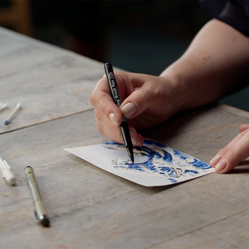 Odkryj swoją kreatywność i stwórz własną, oszałamiającą ilustrację inspirowaną słynną Wielką Falą w Kanagawie dzięki Sakura Creative Kit. Ten kompletny zestaw zawiera wszystko, czego potrzebujesz, aby krok po kroku podążać za artystą w bezpłatnym samouczku wideo, dostępnym przez kod QR. Naucz się, jak ożywić to słynne dzieło sztuki w swoim unikalnym stylu!