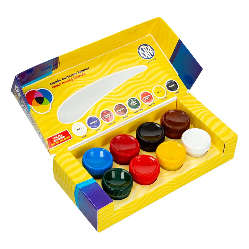 Farby plakatowe 20 ml, 8 kolorów Astra