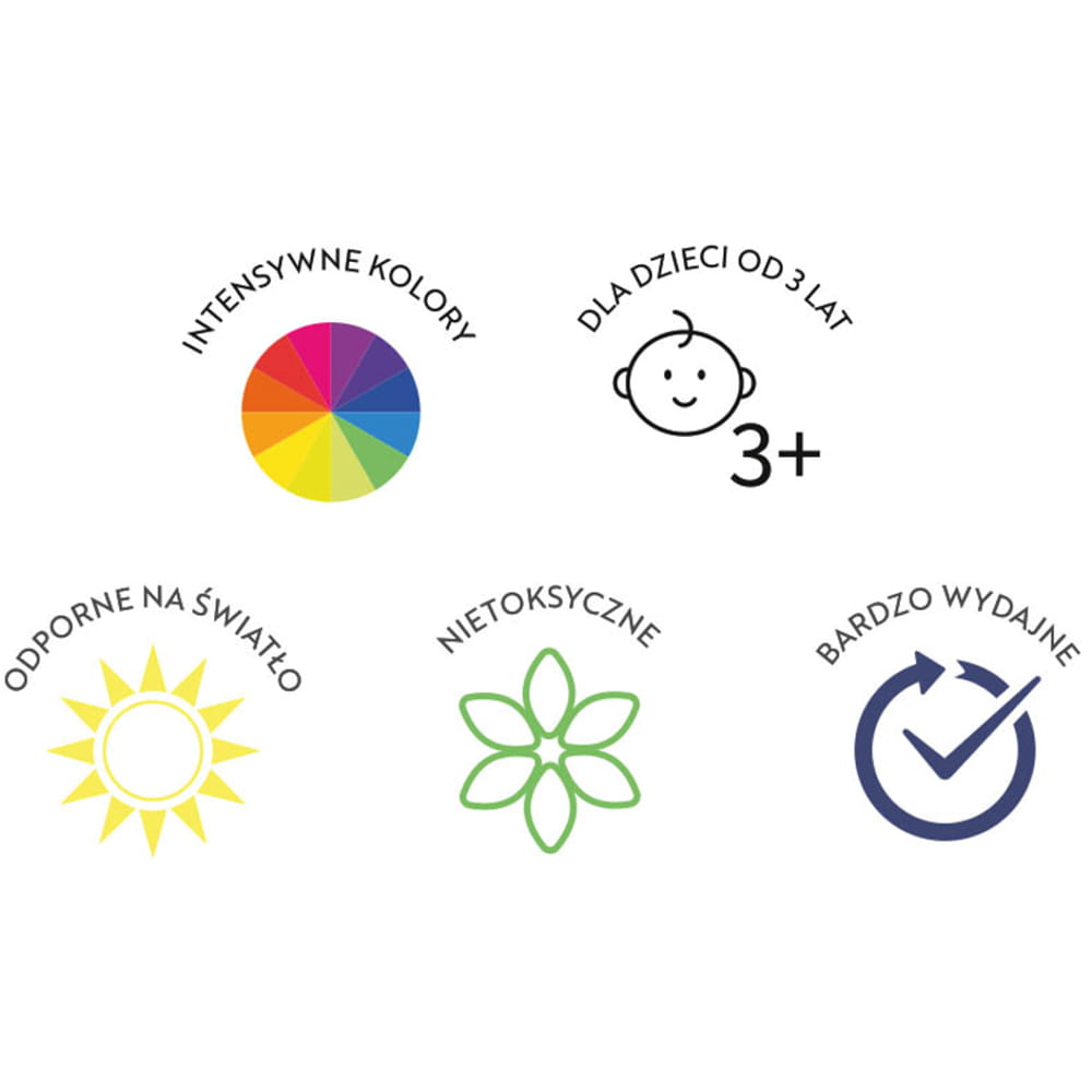 Są nietoksyczne, bezpieczne dla dzieci i łatwo zmywają się z małych rączek!