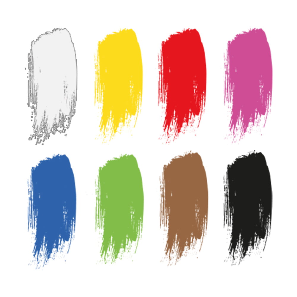 Kolory w zestawie: biały, żółty, czerwony, zielony, różowy, niebieski, brązowy, czarny