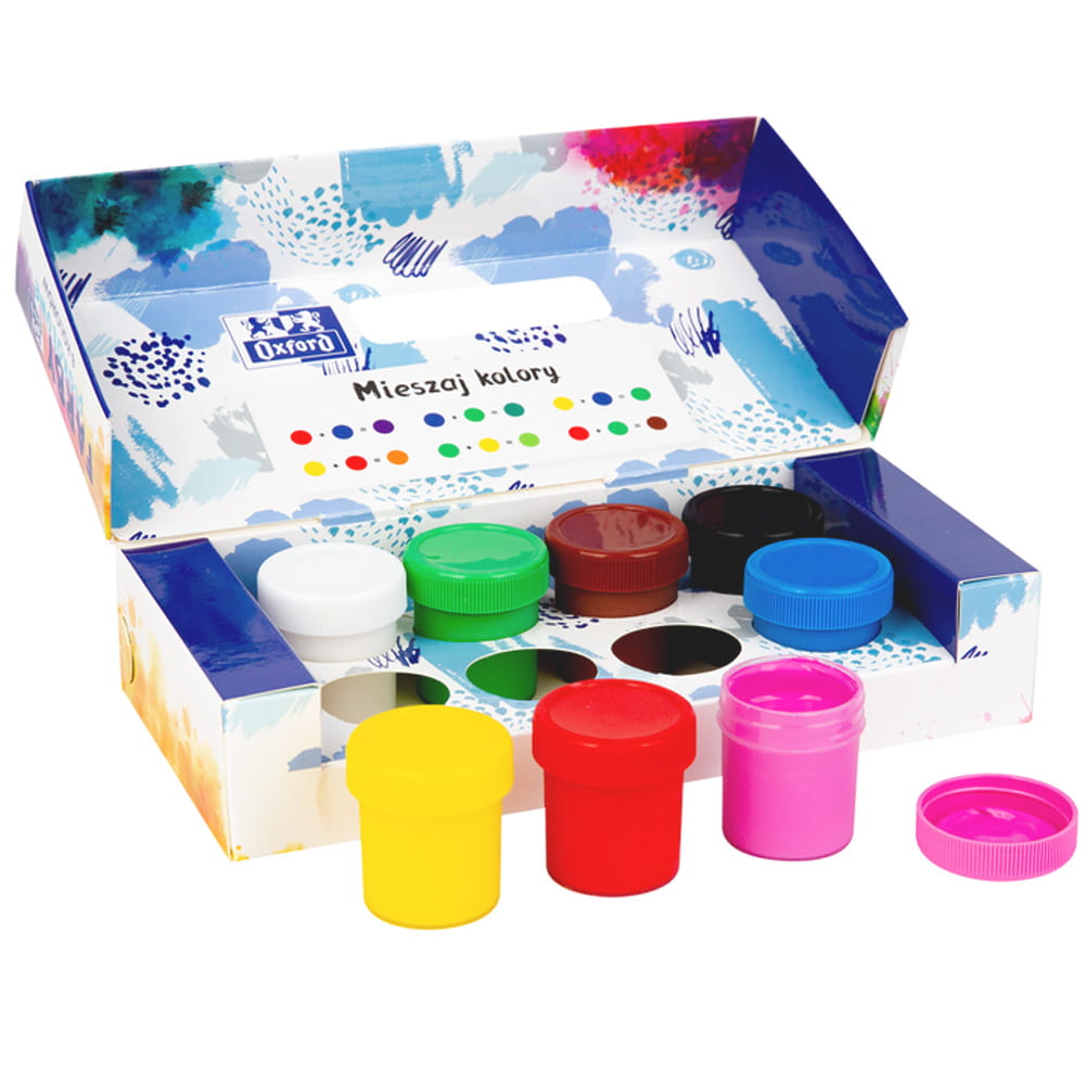 Farby plakatowe Oxford doskonale sprawdzą się w każdej szkole, przedszkolu czy pracowni artystycznej. Poza intensywnymi kolorami i gęstą konsystencją Oxford stawia na wysoką jakość opakowań. W kubeczkach zastosowano pełny gwint, dzięki czemu wieczko zakręca się szczelnie, bez przekręcenia. Farby nie wysychają i można ich używać jeszcze dłużej bez ryzyka utraty jakości.