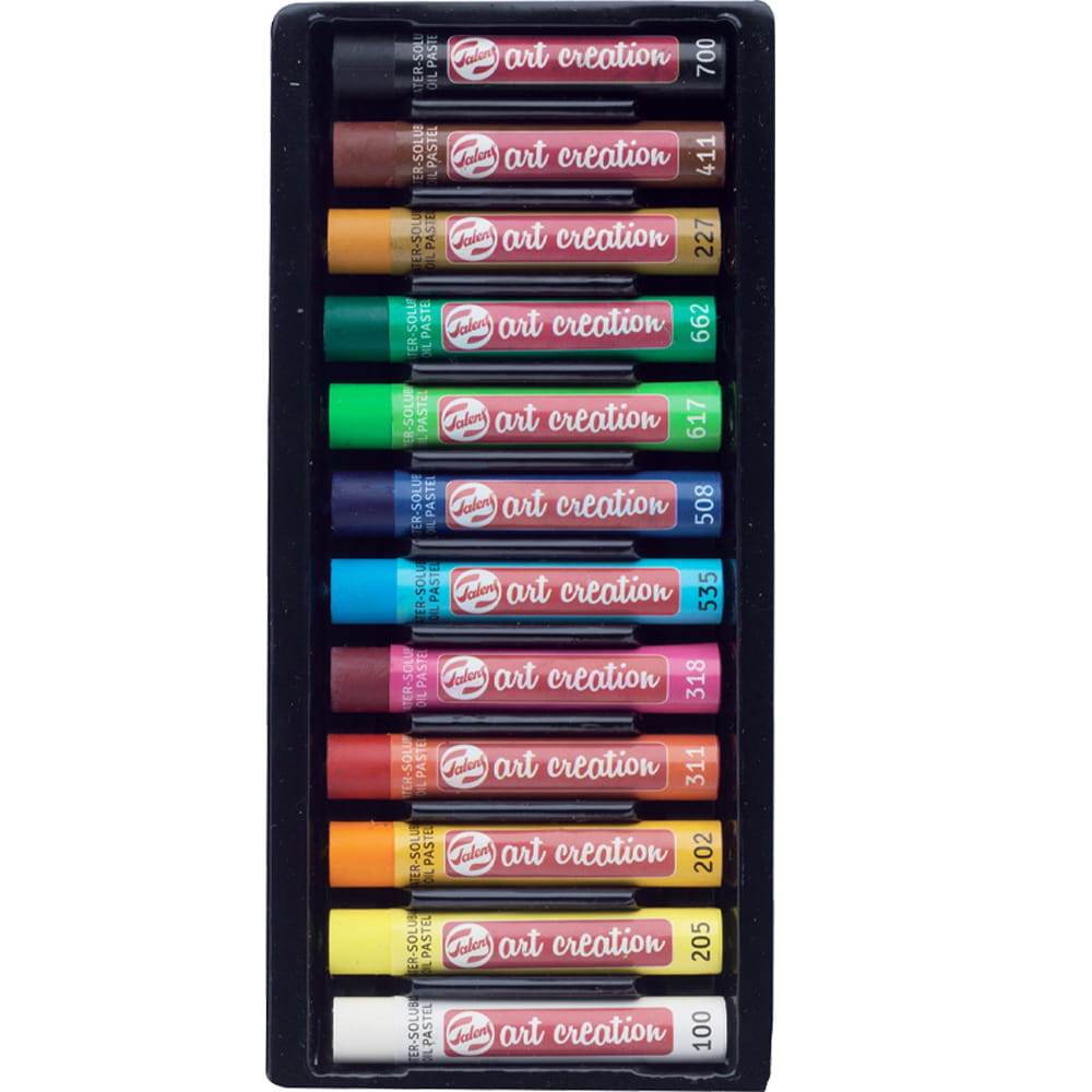 Wodorozcieńczalne pastele olejne marki Art Creation, to wszechstronne pastele olejne o intensywnych kolorach. Pastele te są miękkie i łatwe w rozprowadzaniu, a dzięki swoim właściwościom mogą być używane na różne sposoby. Przy nakładaniu na sucho zachowują się jak tradycyjne pastele olejne, natomiast po dodaniu wody dają efekt podobny do akwareli.