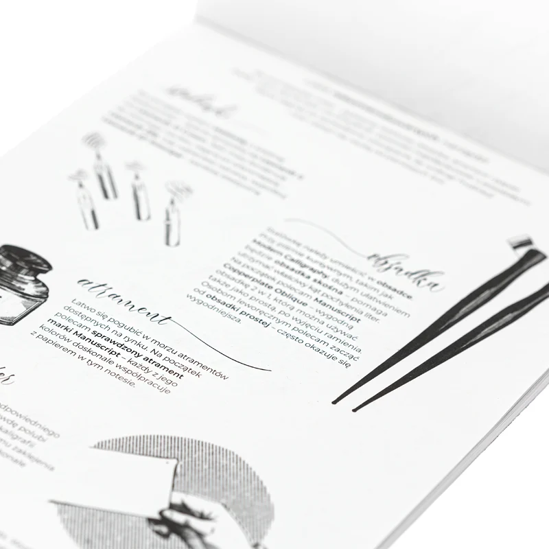 Wszystkie ćwiczenia wydrukowane są na papierze wysokiej jakości dobranym z myślą o pracy ze stalówką i tuszem.